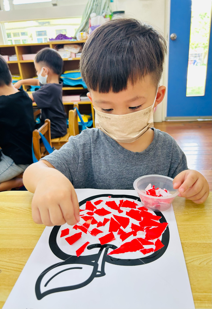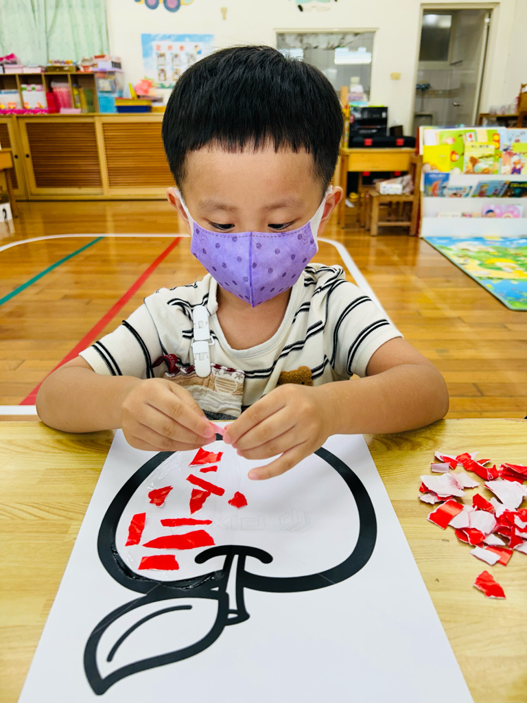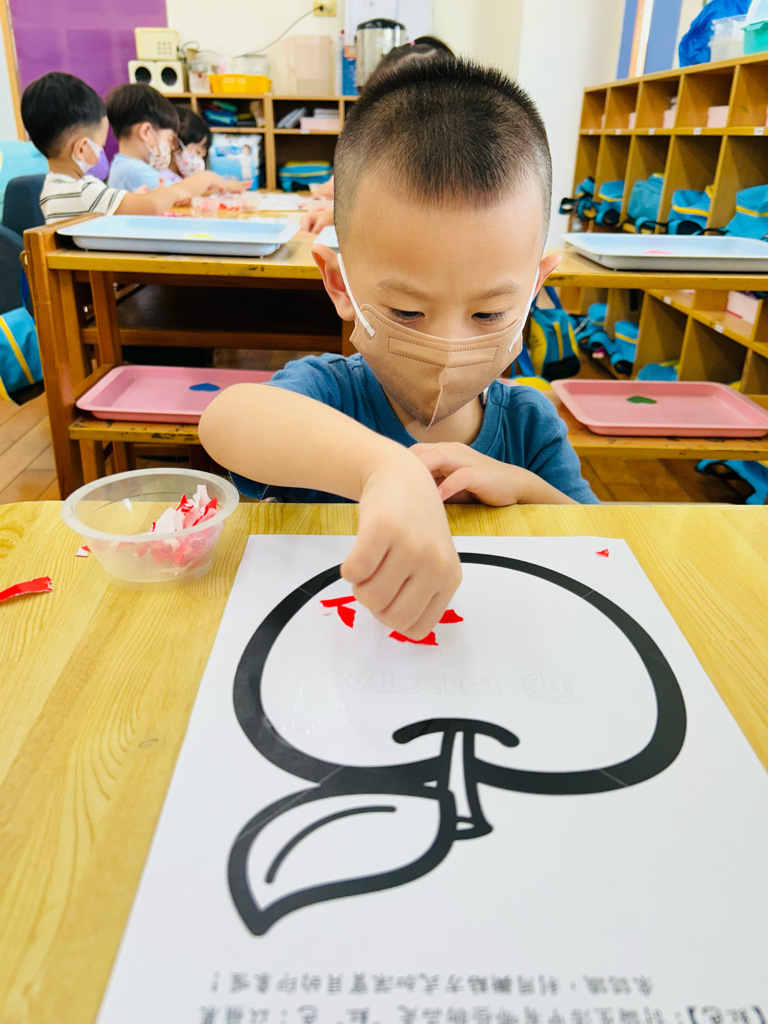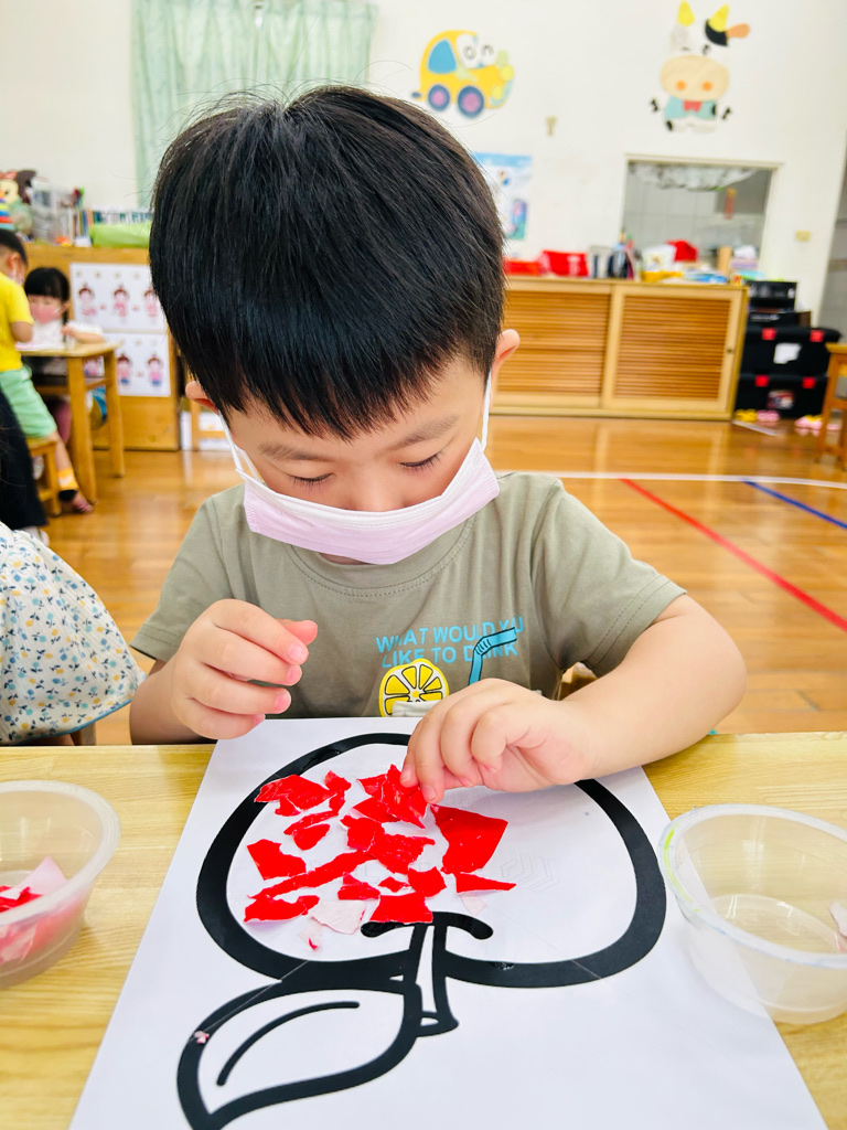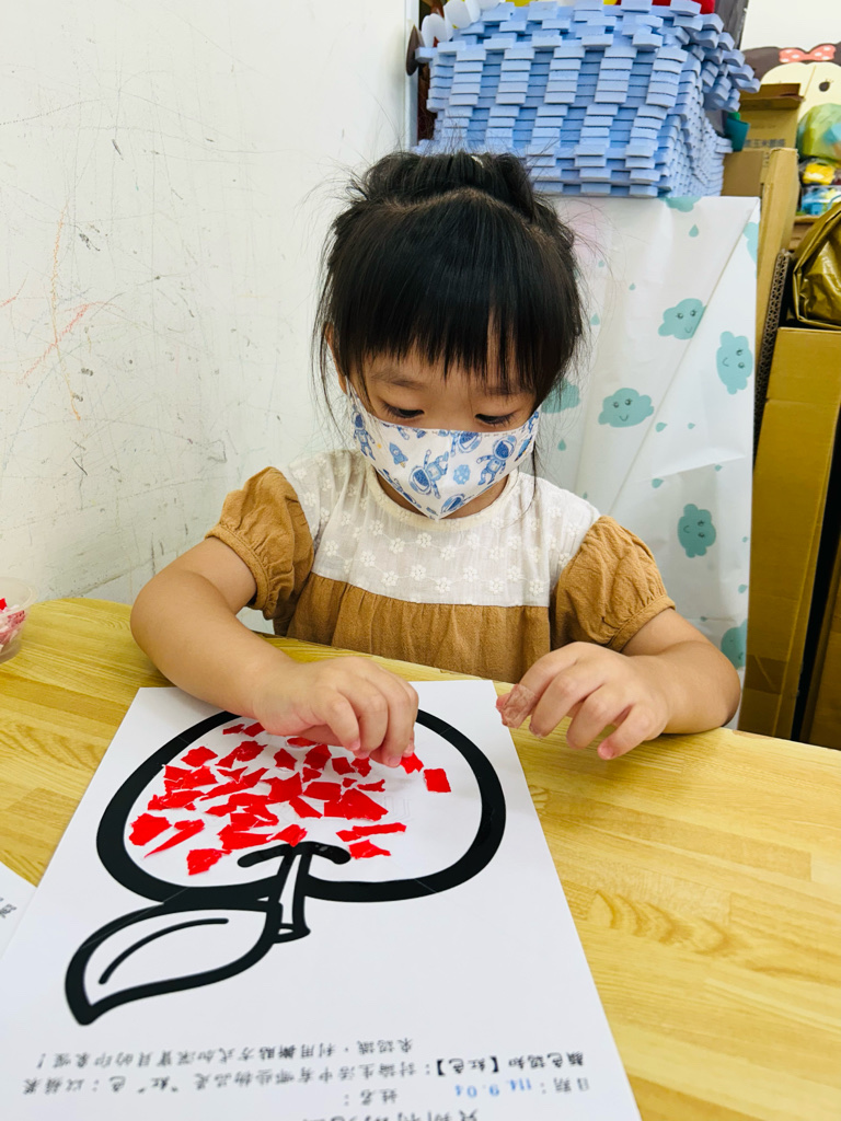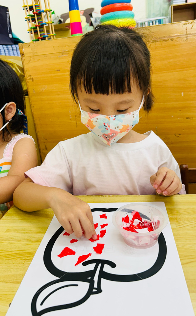 認識顏色~紅色 撕貼練習~訓練小朋友手指頭的小肌肉發展