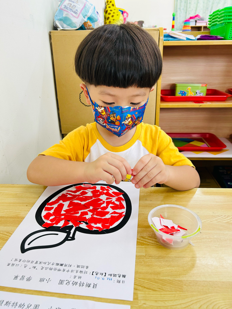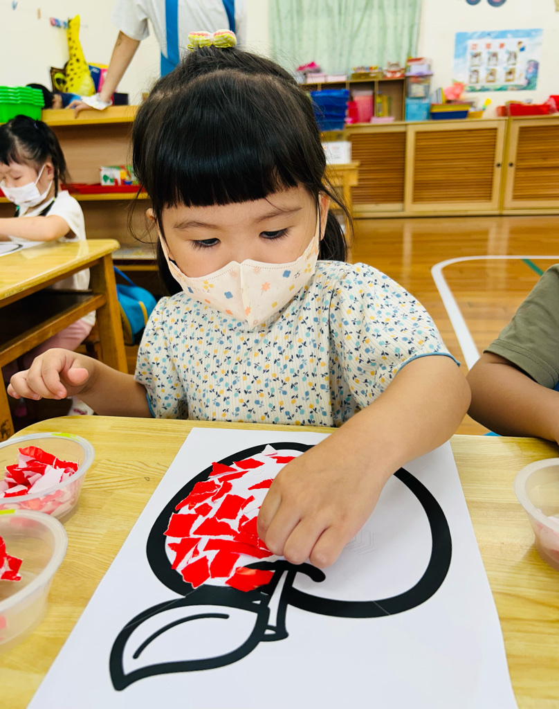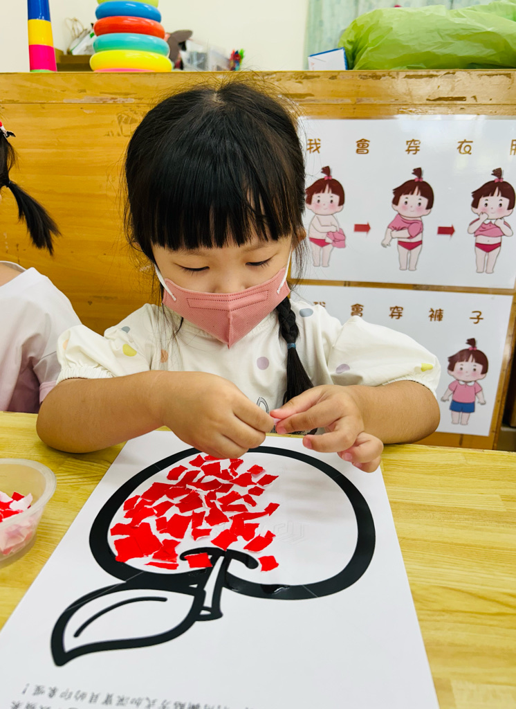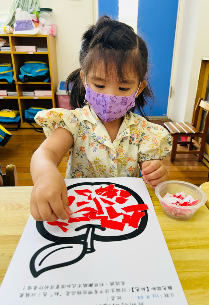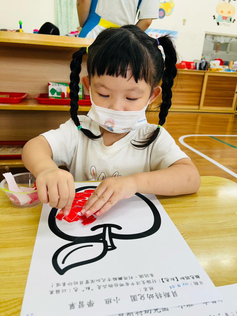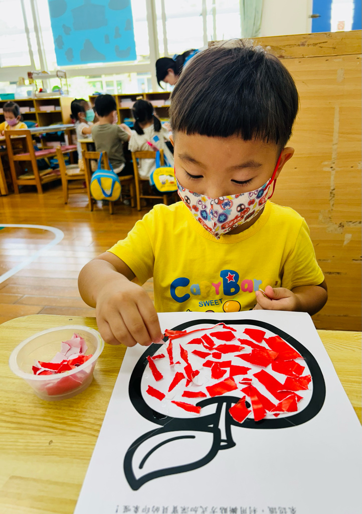 認識顏色~紅色 撕貼練習~訓練小朋友手指頭的小肌肉發展