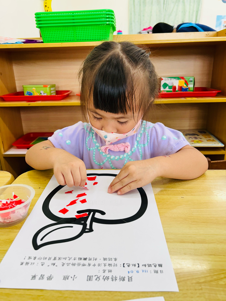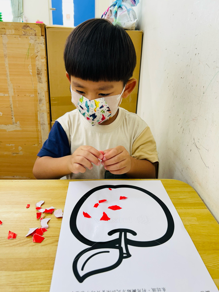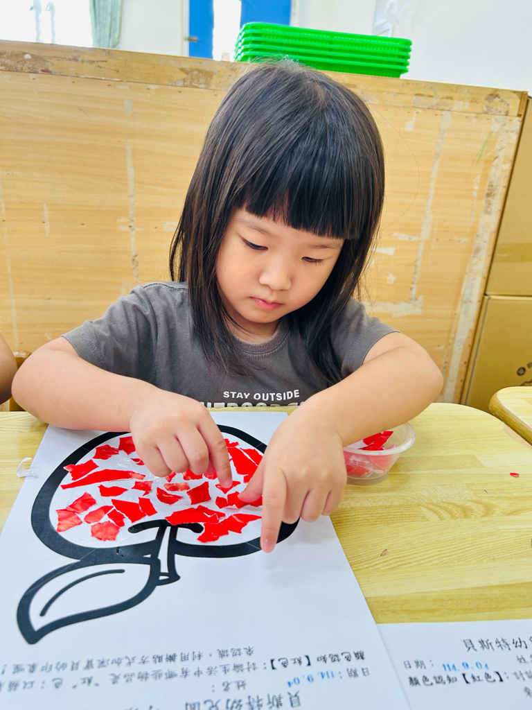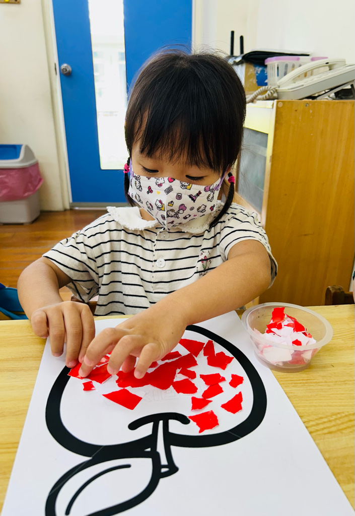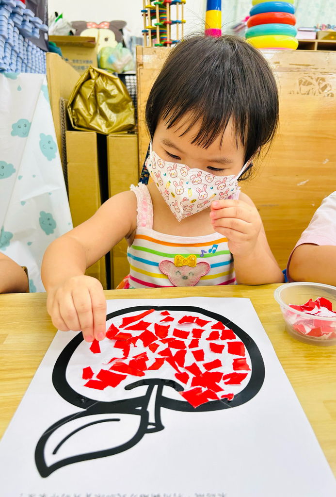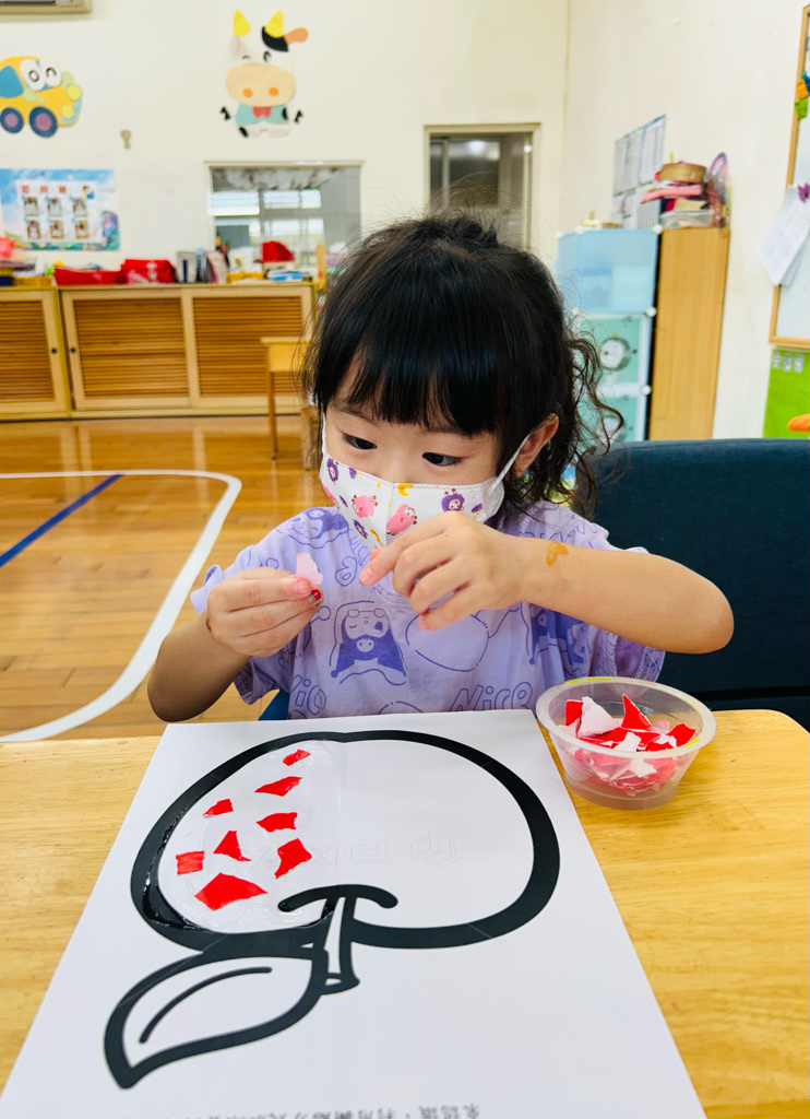 認識顏色~紅色 撕貼練習~訓練小朋友手指頭的小肌肉發展