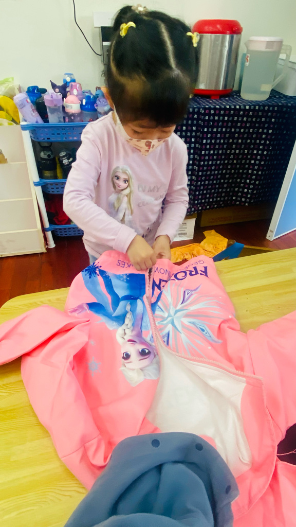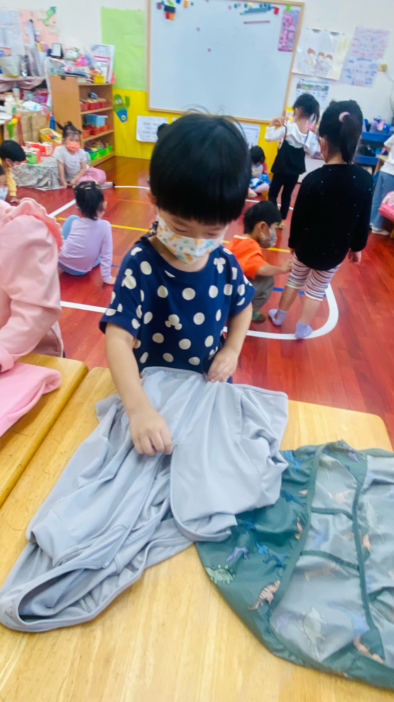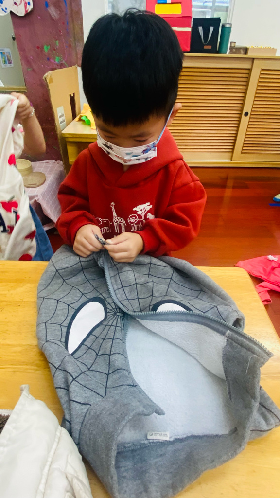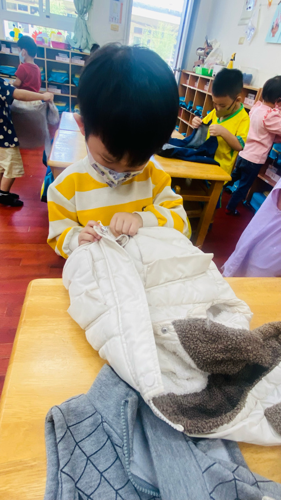 我會自己穿(摺)外套