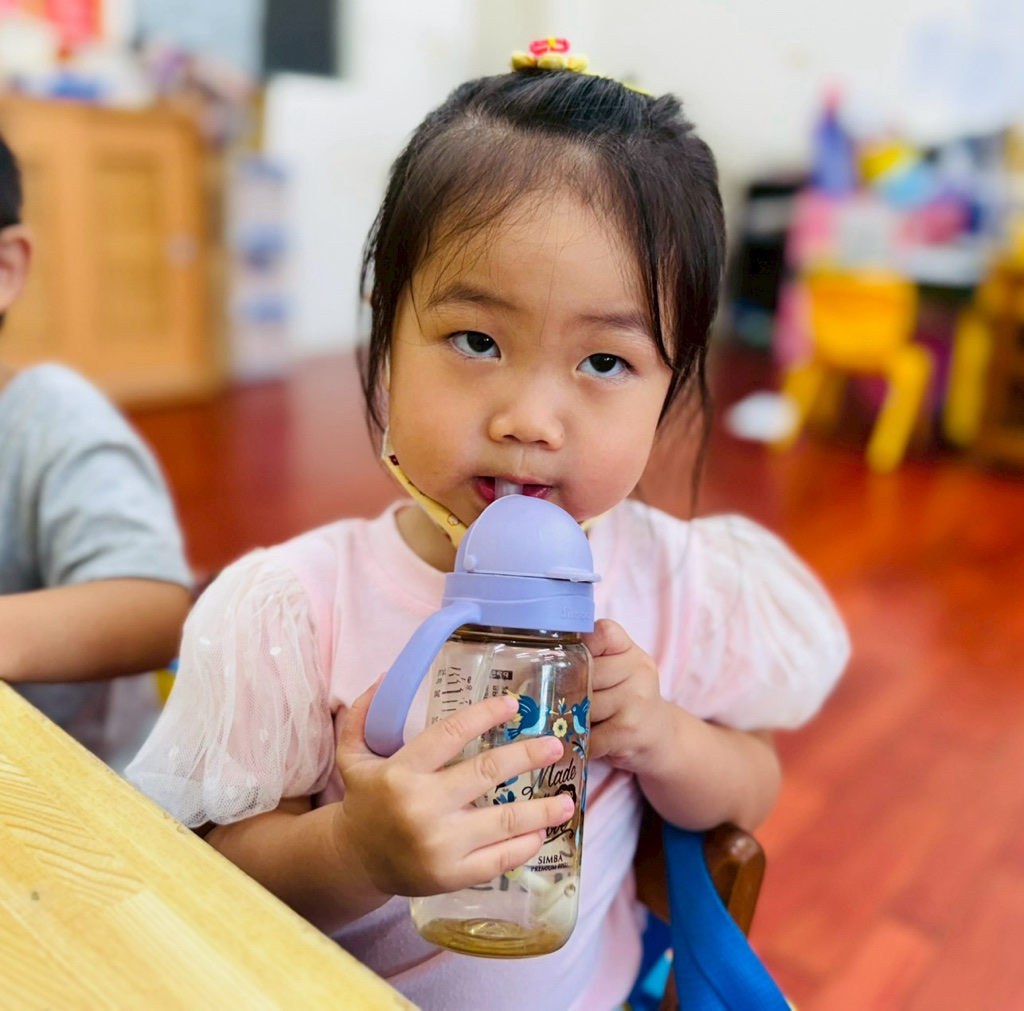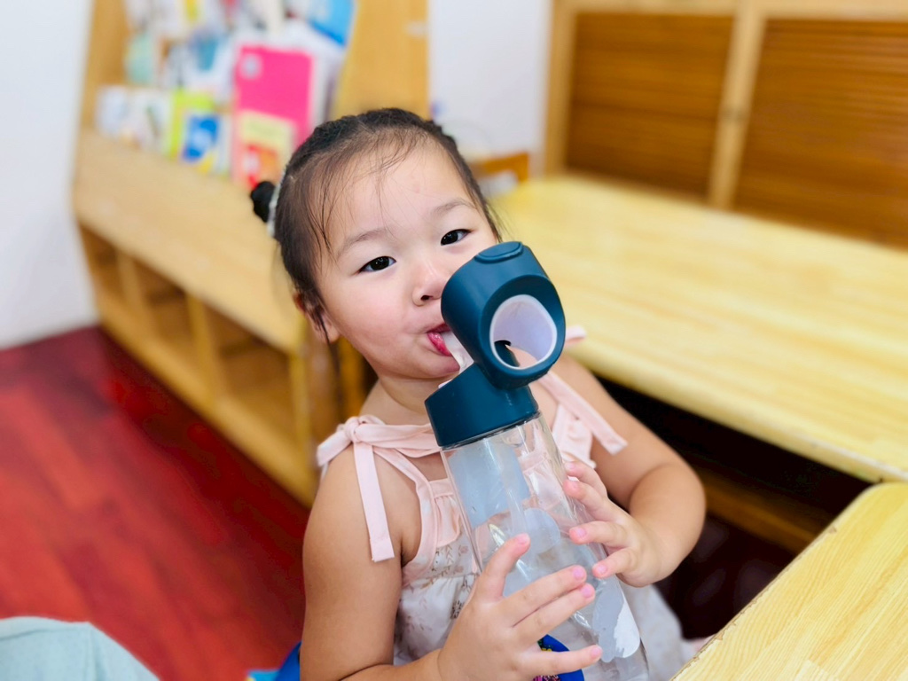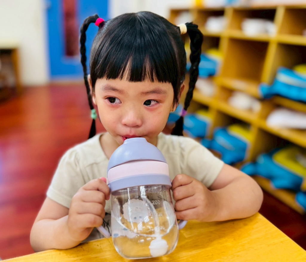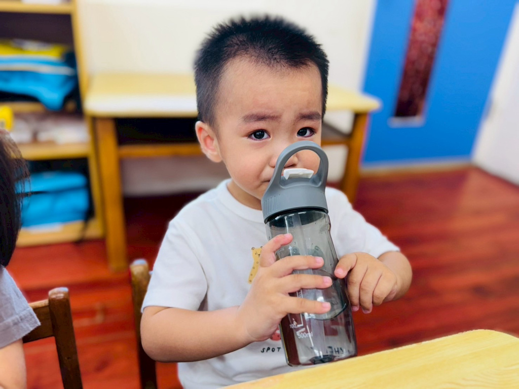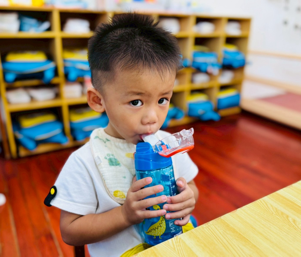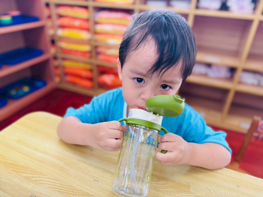 我會用水壺喝水