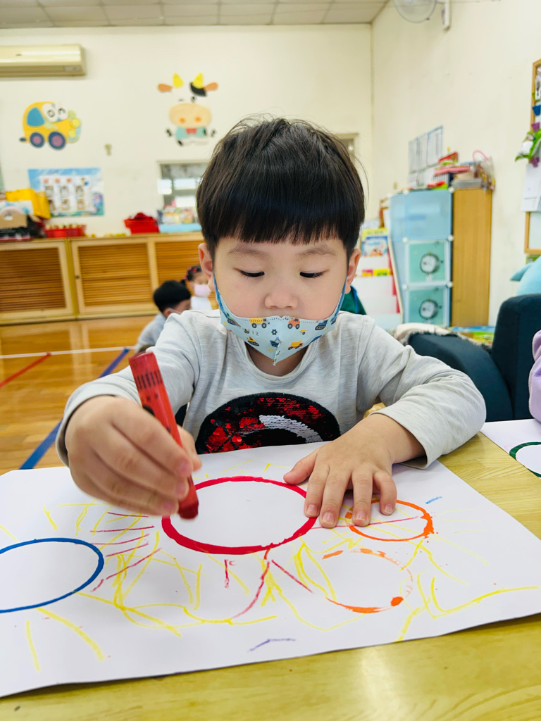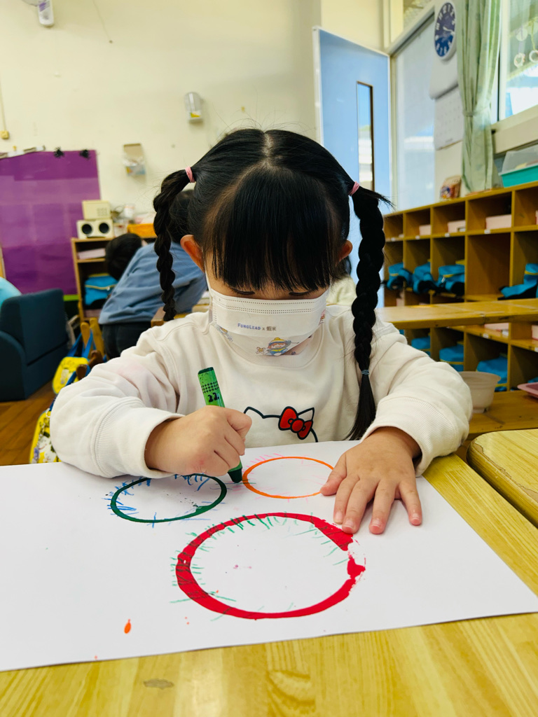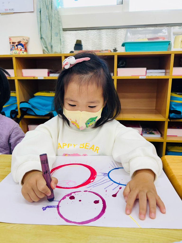 藝術創作~圈圈蓋印 *利用各種不同大小的杯子蓋印,進行創作。