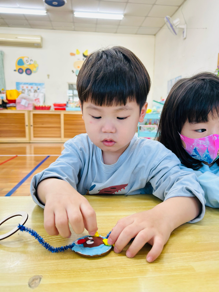 藝術創作~製作聖誕節吊飾 運用塑脂土、毛根,進行創作。