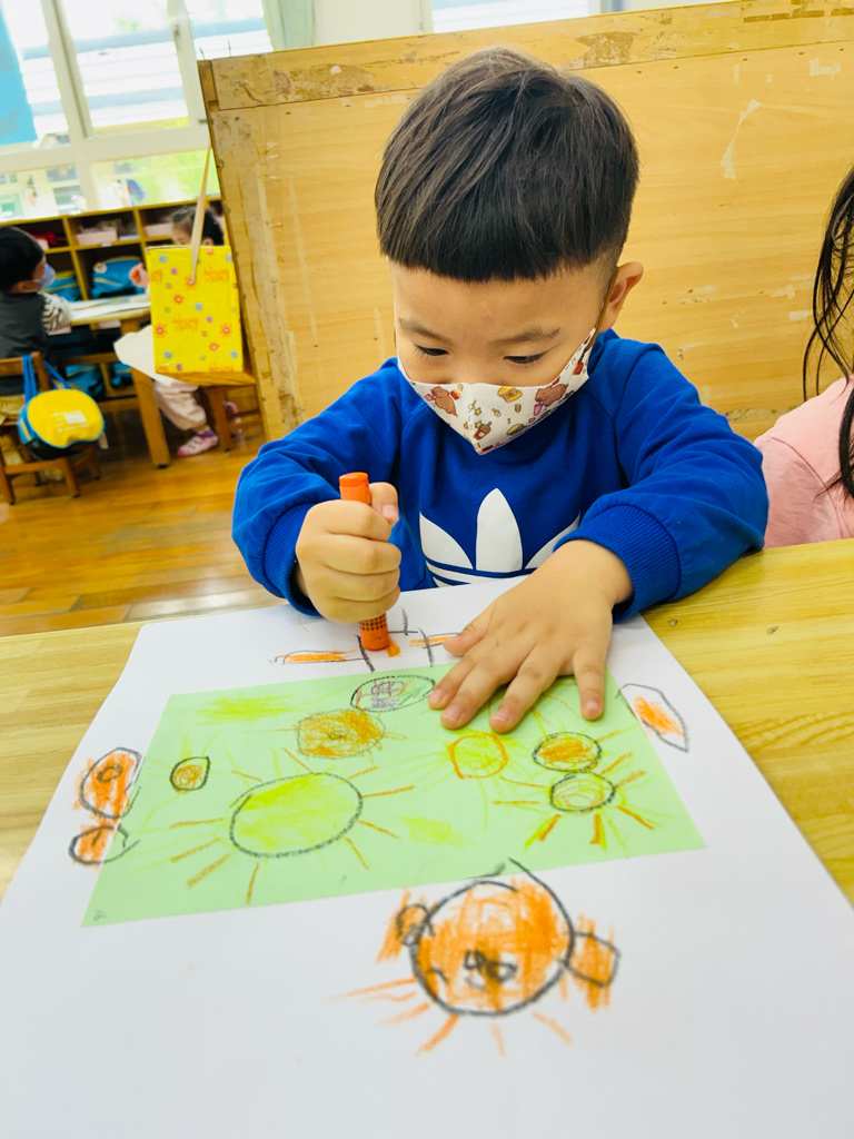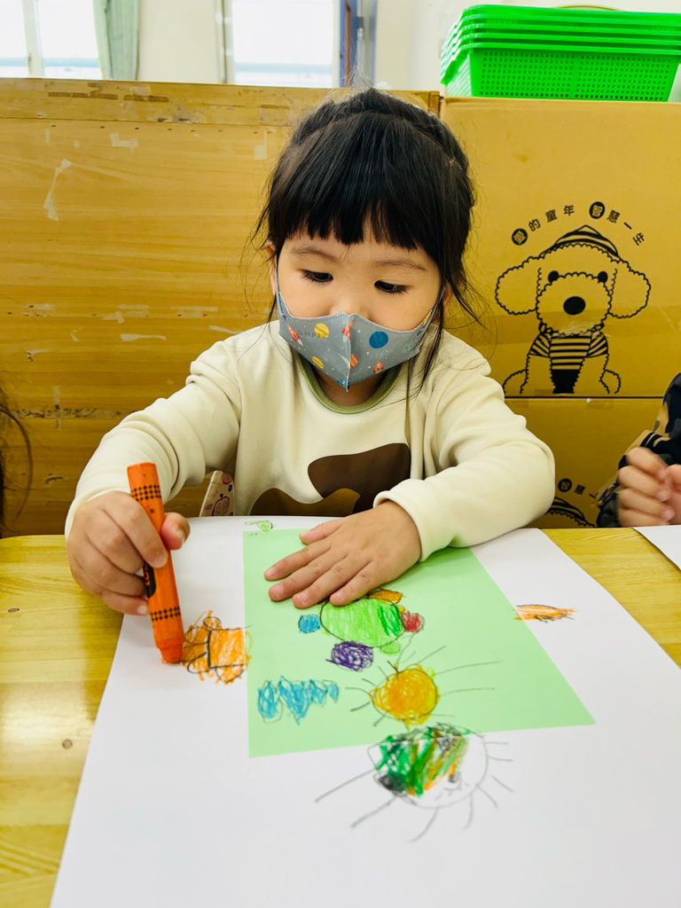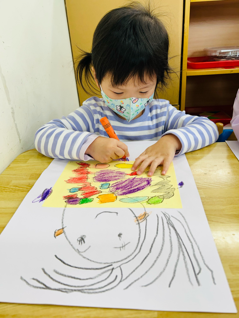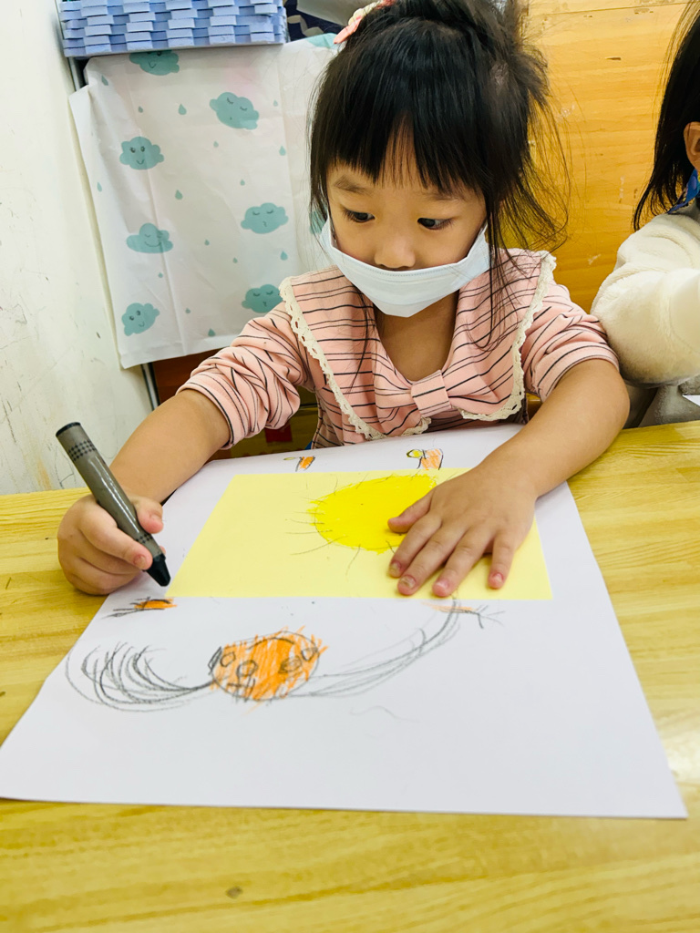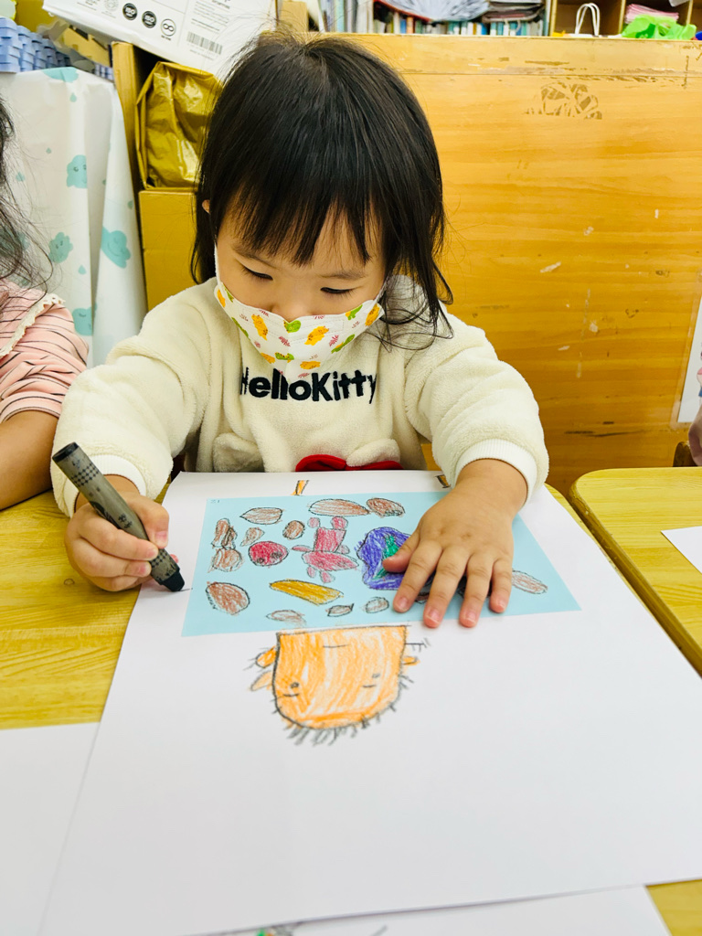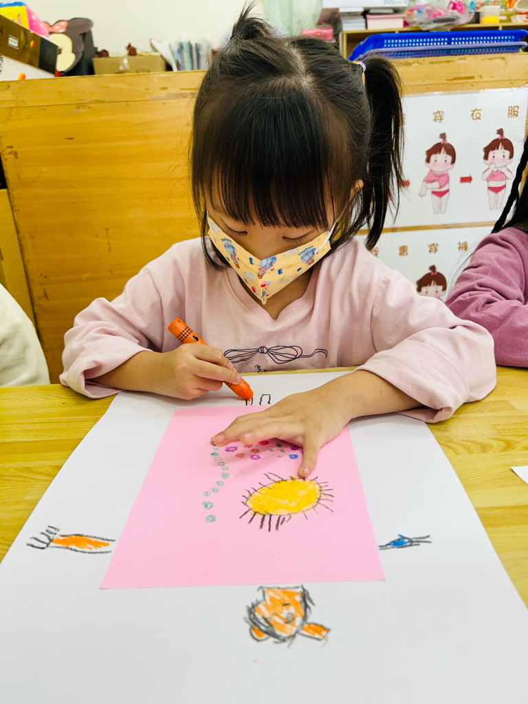 午休甜夢 利用圖畫紙、色紙、蠟筆,進行創作。