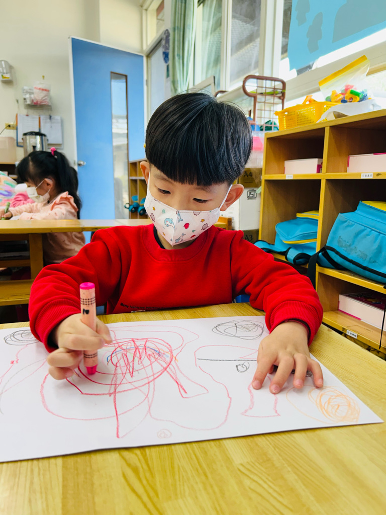 利用圖畫紙、蠟筆進行創作~傳聲筒📣