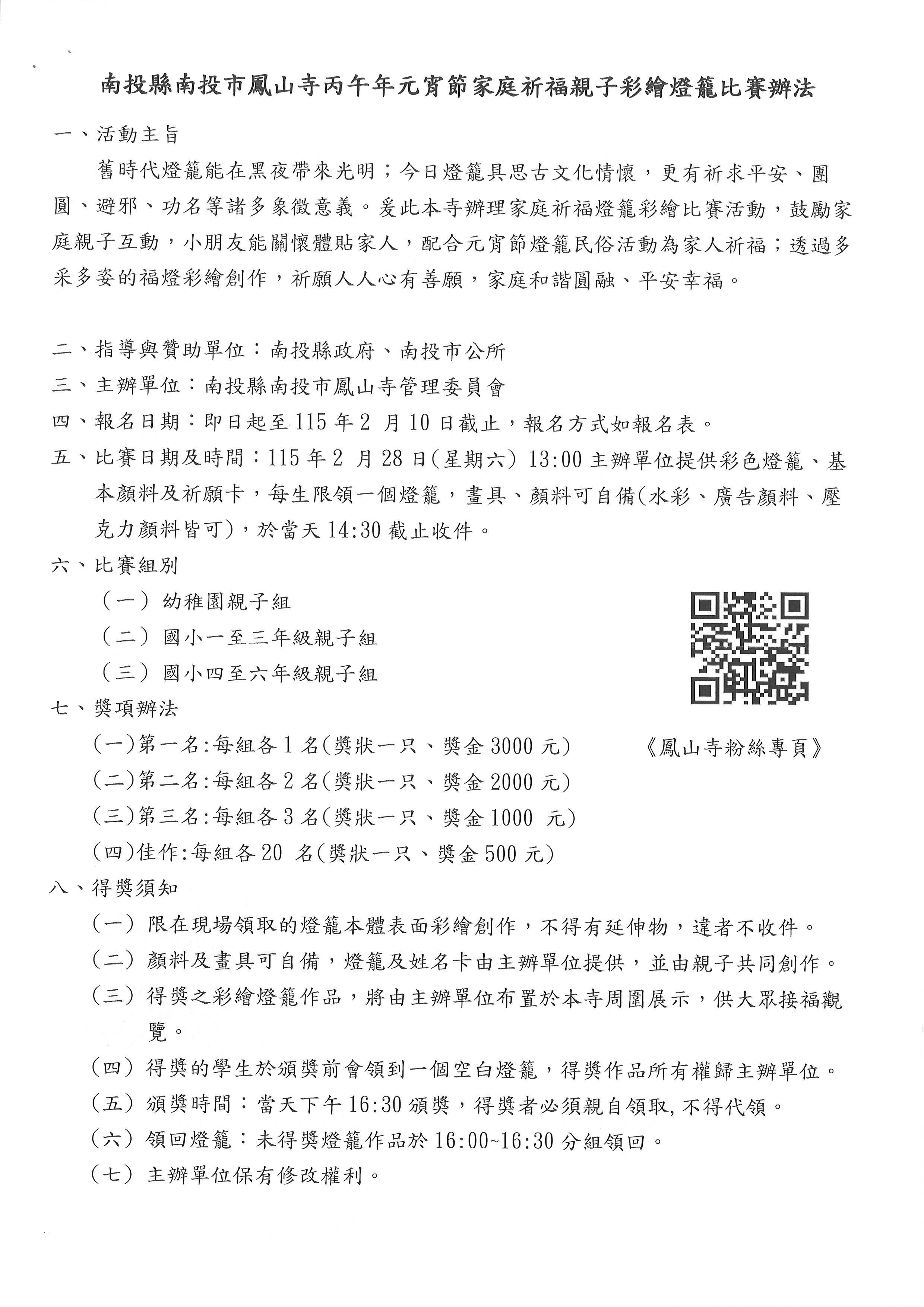 轉知~南投市鳳山寺115年-家庭祈福親子彩繪燈籠比賽活動辦法
